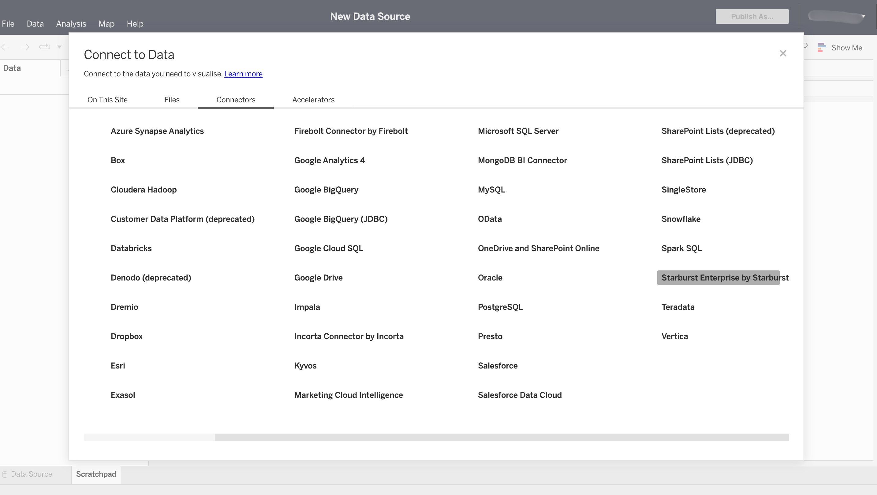 3. Navigate to the connector tab and select "Starburst Enterprises". &#x20;